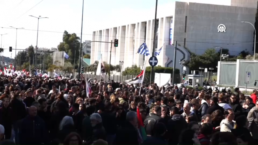 Atina’da binlerce kişi, sendikaların ve kitle örgütlerinin çağrısıyla ABD Büyükelçiliği önünde bir araya gelerek İran’a yönelik emperyalist saldırganlığı protesto etti.