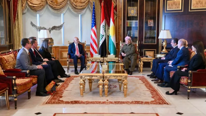 Irak Kürt Bölgesel Yönetimi (IKBY) Başkanı Mesud Barzani, ABD Başkanı Donald Trump’ın Suriye Özel Temsilcisi ve ABD’nin Ankara Büyükelçisi Tom Barrack ile IKBY’nin Pirman bölgesinde bir araya geldi.