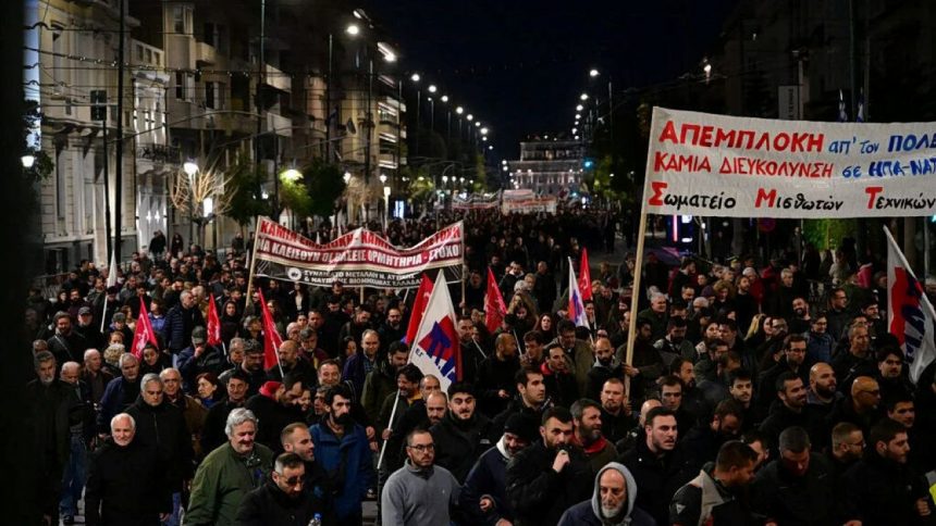 Protesto sadece savaş karşıtı mesajlarla sınırlı kalmadı; ulaşım ve gıda sektörü çalışanları, askeri harcamalar ile halkın yoksullaşması arasındaki bağa dikkat çekti. Sendikaların ortak talebi şu oldu: “Toplu iş sözleşmeleri ile ücret artışı, 13. ve 14. maaşların geri iadesi ve ulaşım bilet fiyatlarında ciddi indirim.” PAME tarafından yapılan resmi açıklamada, Ortadoğu’da yıkıma yol açan politikaların aynı zamanda halk arasında yoksulluğu yaydığı savunuldu. ABD Büyükelçiliği önünde son bulan yürüyüşte, bölgedeki savaş stratejilerinin ve halkı fakirleştiren politikaların durdurulması yönündeki kararlılık yinelendi/aydınlık